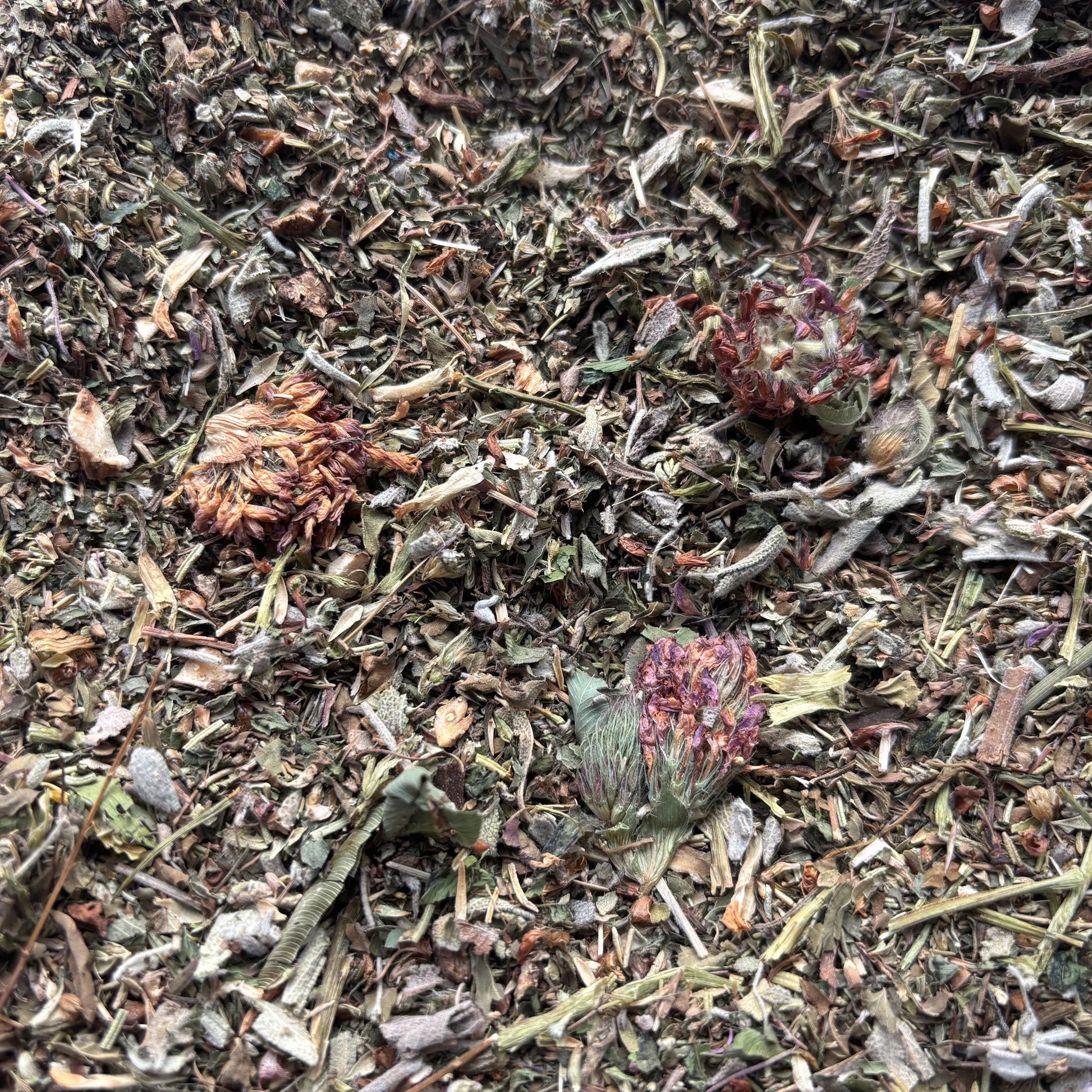 Thyme leaf*, Rosemary leaf*, Peppermint*, Sage*, Oregano*, Dandelion Root*, Red Clover*, Rama holy basil (tulsi)*