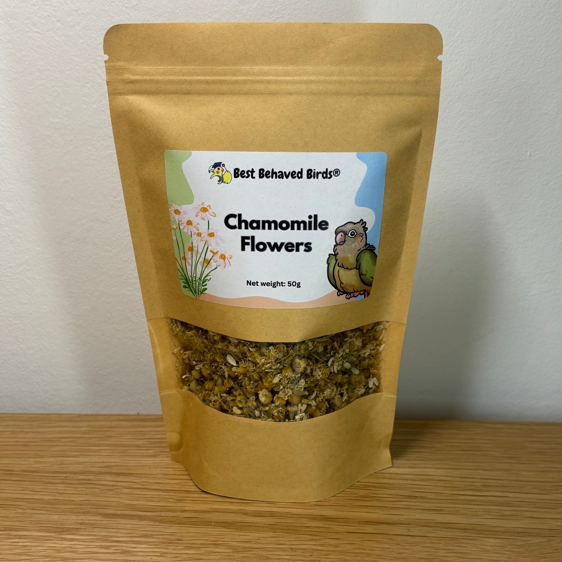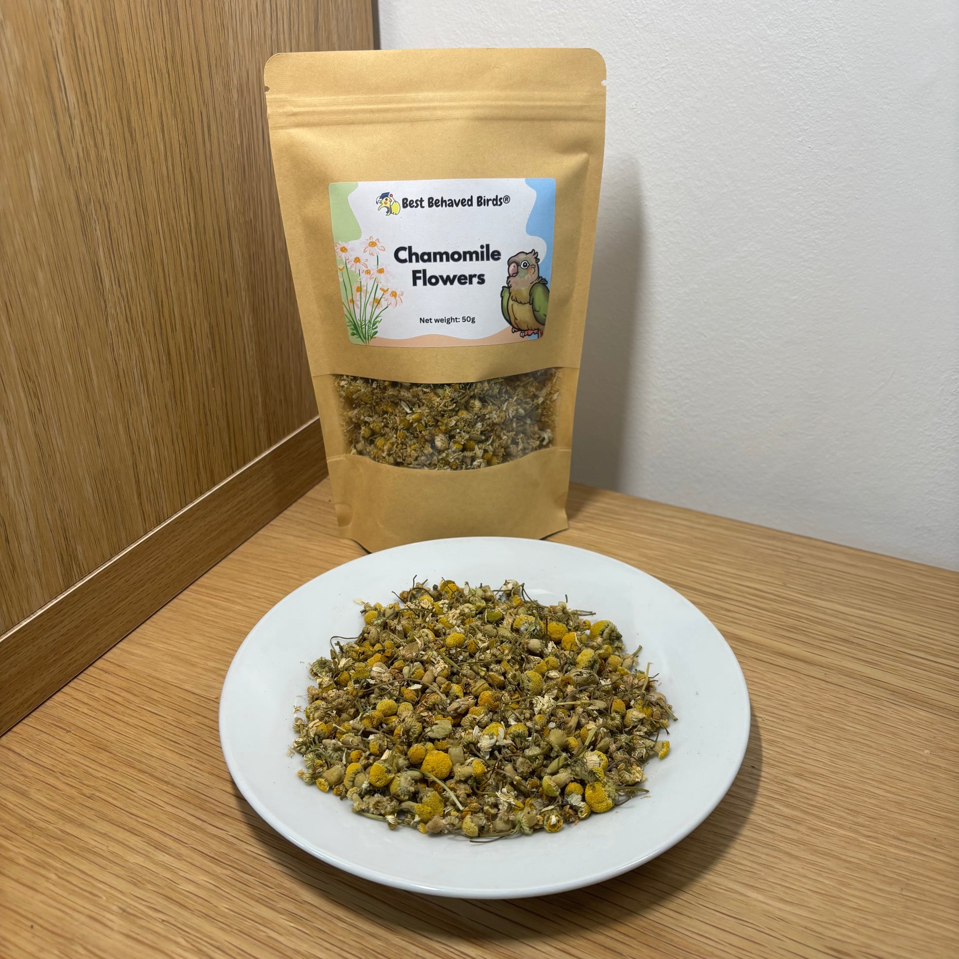 Chamomile Flowers are a great addition to your bird's diet. Chamomile has many potential benefits for your bird, including encouraging calm and improving digestion.