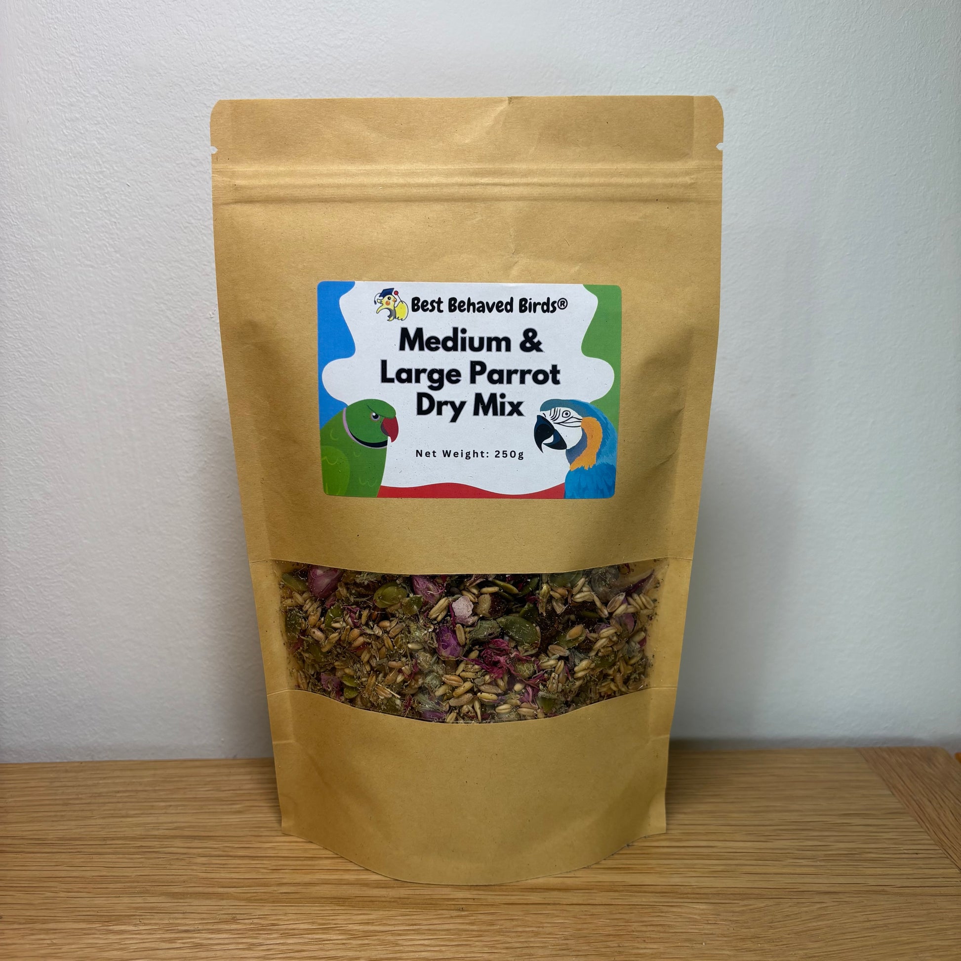 Medium & Large Parrot Dry Mix 250g - Best Behaved Birds